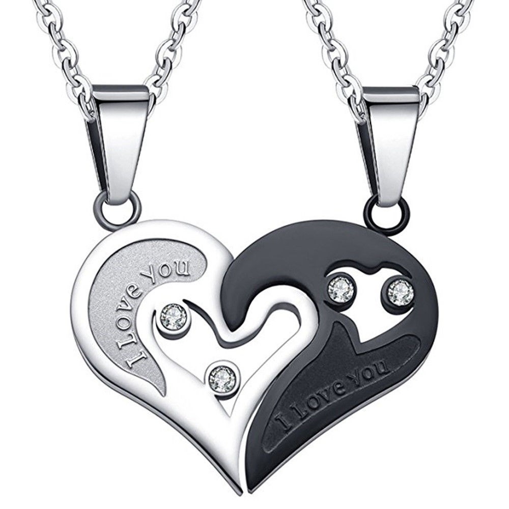 Парные кулоны выполнены в форме двух половинок сердца, серебристого и черного цвета.