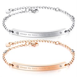 Парные браслеты для сестёр из нержавеющей стали с надписью "Alweys My Sister Forever My Friend" - "Мы сестры, навсегда друзья", в комплект входят 2 браслета один золотого цвета, другой серебристого, украшены кубическим цирконием. Размер браслета 18см (+5см удлиненние)