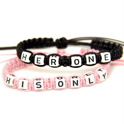 Парные браслеты "только он, только она" можно назвать самым милым подарком. Мужской чёрного цвета с надписью "Her one", женский нежно-розового с надписью "His Only". Плетение выглядит очень модно, а надпись говорит о глубине ваших чувств.
