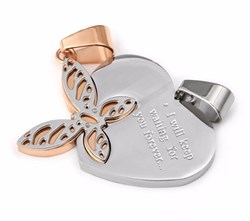 Парные кулоны "Я буду ждать тебя вечно" , кулон состоит из двух частей одна часть в виде бабочки, вторая выполнена в виде сердца с надписью "I will keep waiting for you forever". Бабочка обязательно найдёт только это сердце.